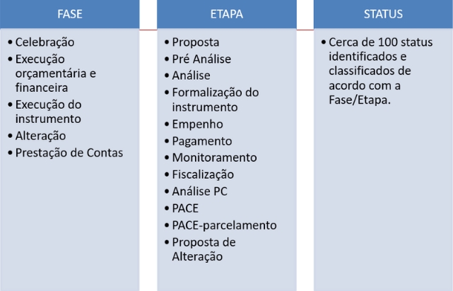 Estão cadastrados mais de 100 status dentro do SIT, em que cada um segue um fluxo lógico de correlação com a Fase e a Etapa do instrumento.