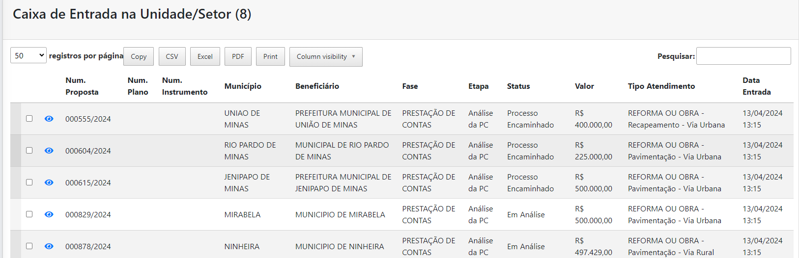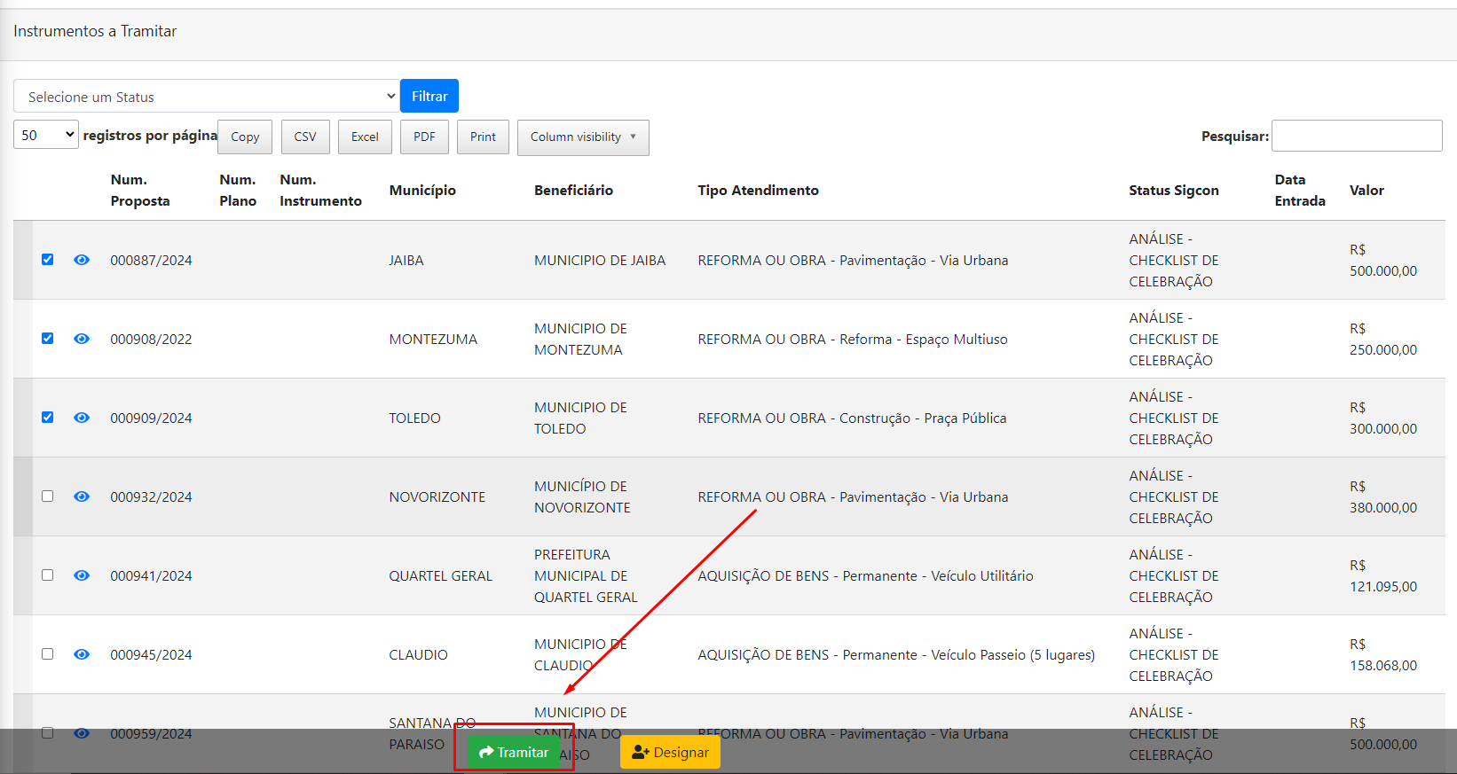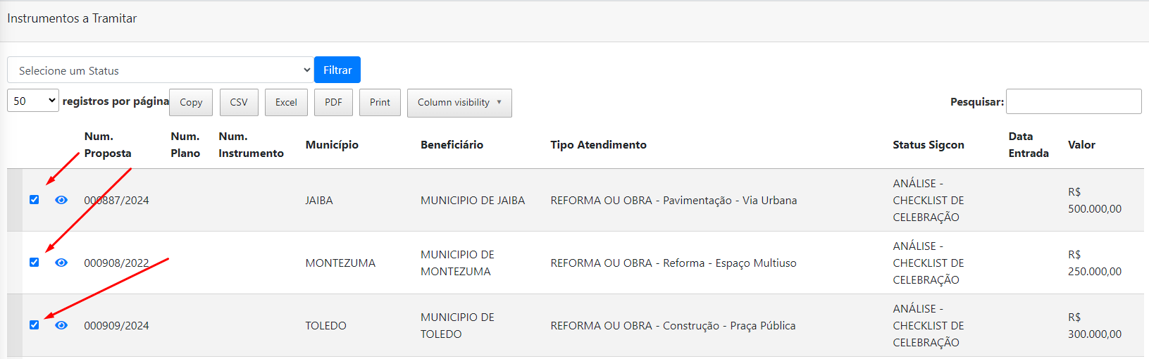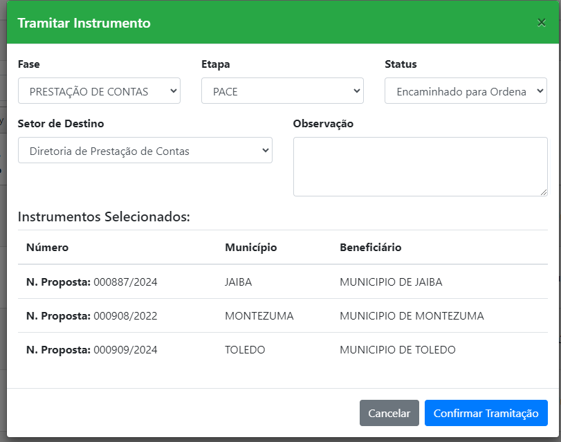 Receber instrumentos e inclui-los para dentro do sistema: